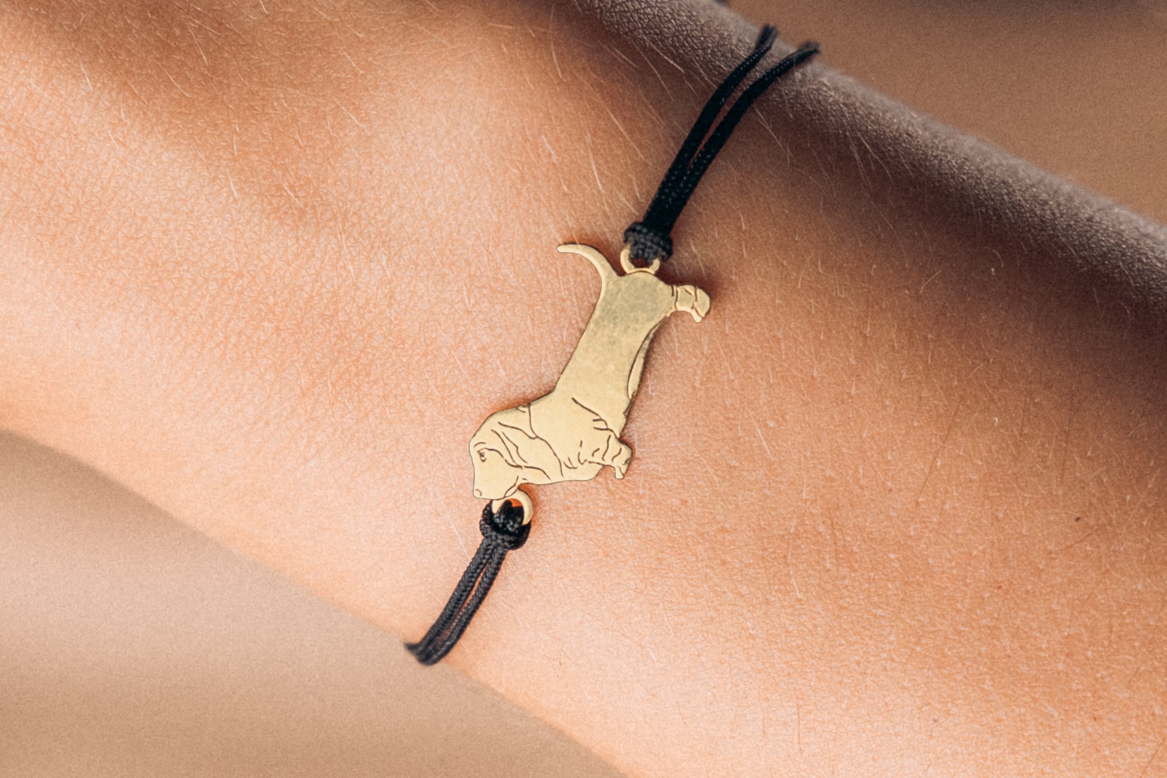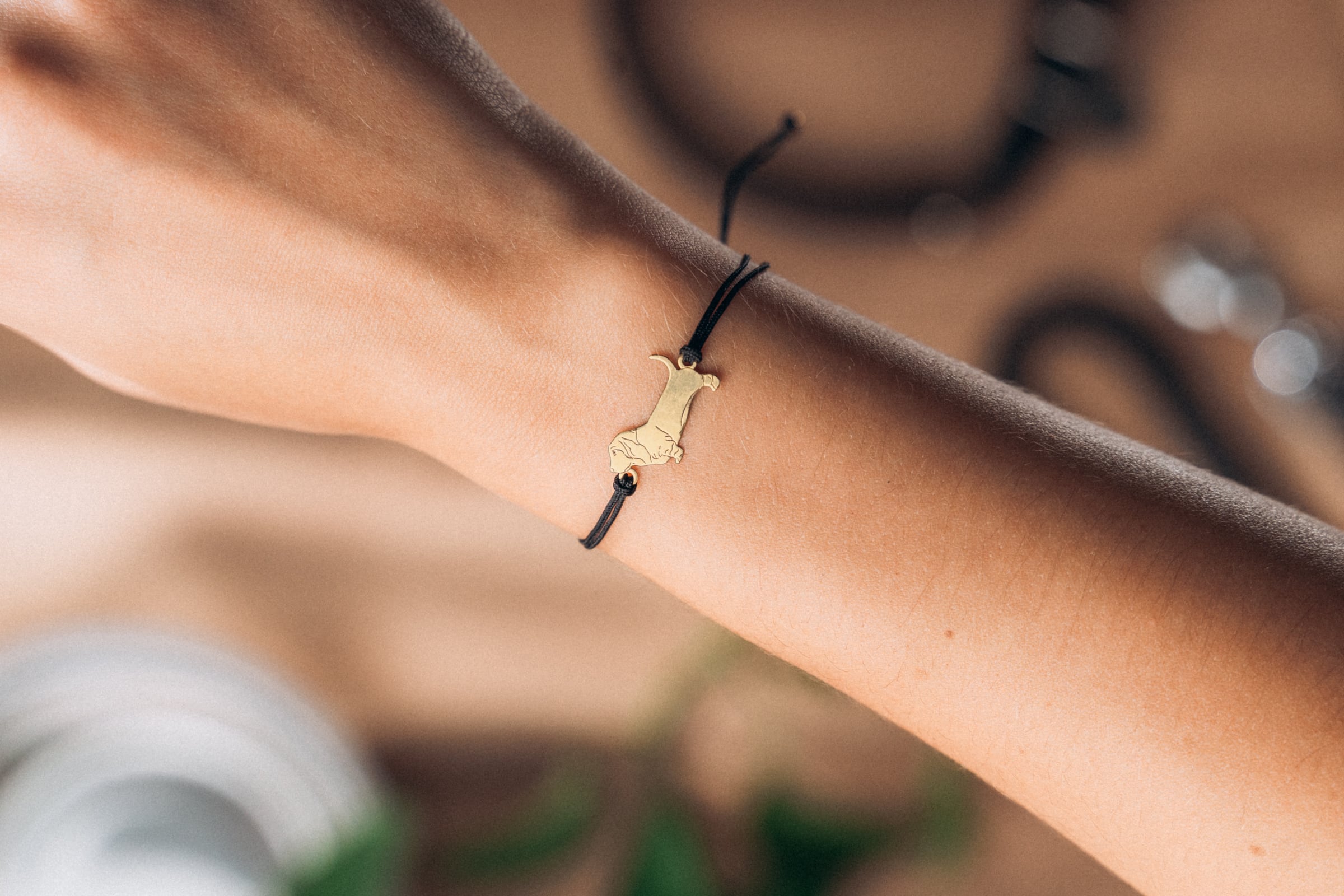 Bransoletka z psem bassetem złotym na sznurku