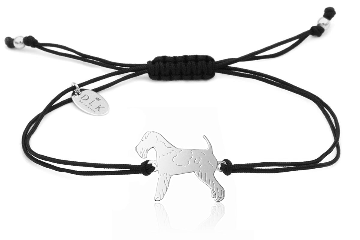Bransoletka z psem foksterierem srebrnym na czarnym sznurku