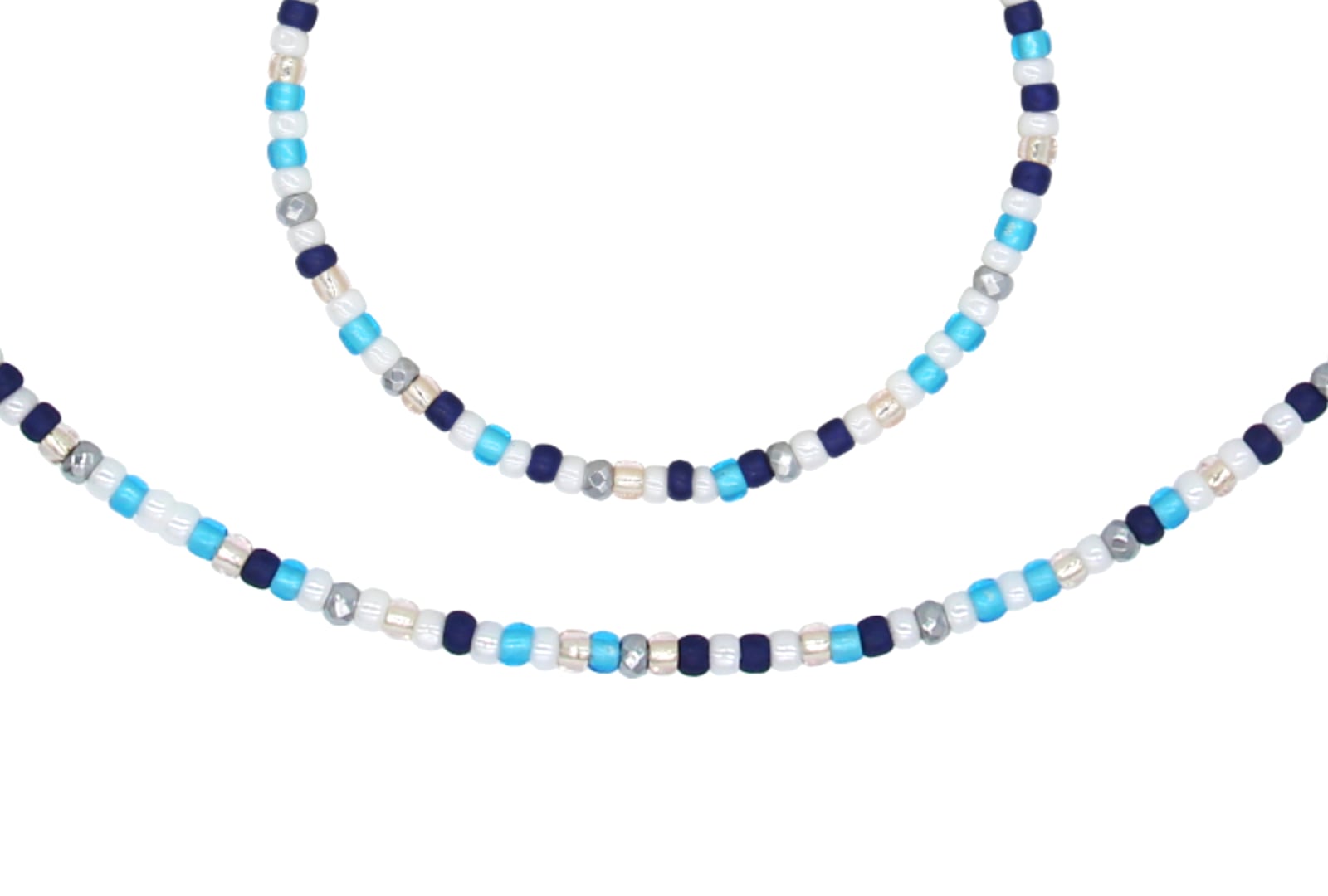 Komplet biżuterii GRECKIE WAKACJE składa się z delikatnego naszyjnika i pasującej bransoletki, wykonany jest z drobnych koralików, subtelnie przełamanych akcentami hematytu. Drobne koraliki japońskie zachwycają jakością wykonania, bogactwem kolorów, urodą i kształtem, dlatego wybierają je twórcy biżuterii na całym świecie. Hematyt pozytywnie wpływa na wszystko, co wiąże się z krwią: jej wytwarzanie, krwiobieg, tamowanie krwawień, menstruację. Ułatwia wchłanianie żelaza. Reguluje nadciśnienie, zapobiega nadmiernym skurczom mięśni i przyspieszonemu pulsowi. W sferze psychicznej budzi radość życia, dodaje odwagi i umacnia wolę.