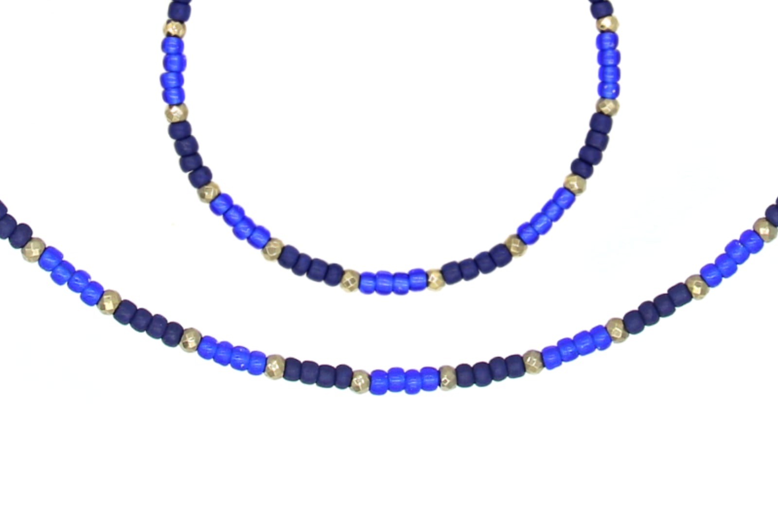 Komplet biżuterii GWIEŹDZISTA NOC składa się z delikatnego naszyjnika i pasującej bransoletki, wykonany jest z drobnych koralików, subtelnie przełamanych akcentami hematytu. Drobne koraliki japońskie zachwycają jakością wykonania, bogactwem kolorów, urodą i kształtem, dlatego wybierają je twórcy biżuterii na całym świecie. Hematyt pozytywnie wpływa na wszystko, co wiąże się z krwią: jej wytwarzanie, krwiobieg, tamowanie krwawień, menstruację. Ułatwia wchłanianie żelaza. Reguluje nadciśnienie, zapobiega nadmiernym skurczom mięśni i przyspieszonemu pulsowi. W sferze psychicznej budzi radość życia, dodaje odwagi i umacnia wolę.