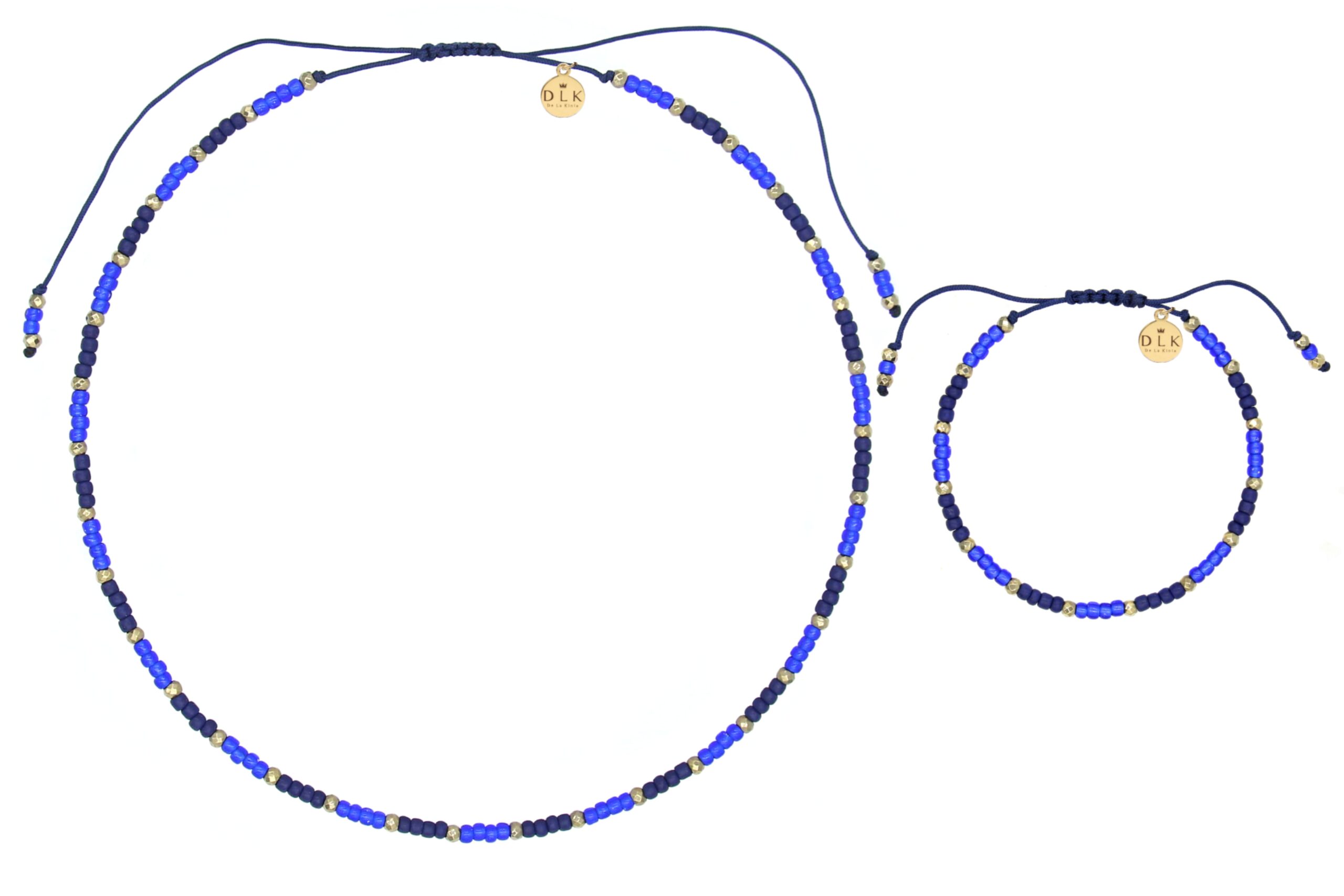Naszyjnik i bransoletka osadzone są na regulowanym sznurku, co zapewnia idealne dopasowanie zarówno na dekolcie, jak i na nadgarstku: