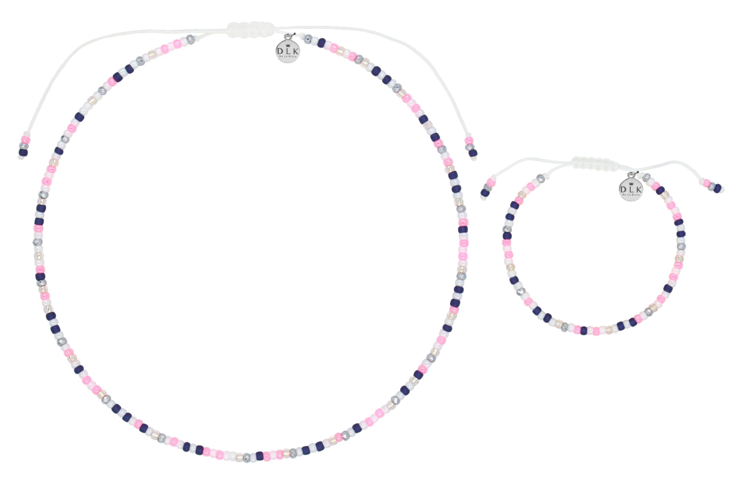 Naszyjnik i bransoletka osadzone są na regulowanym sznurku, co zapewnia idealne dopasowanie zarówno na dekolcie, jak i na nadgarstku: