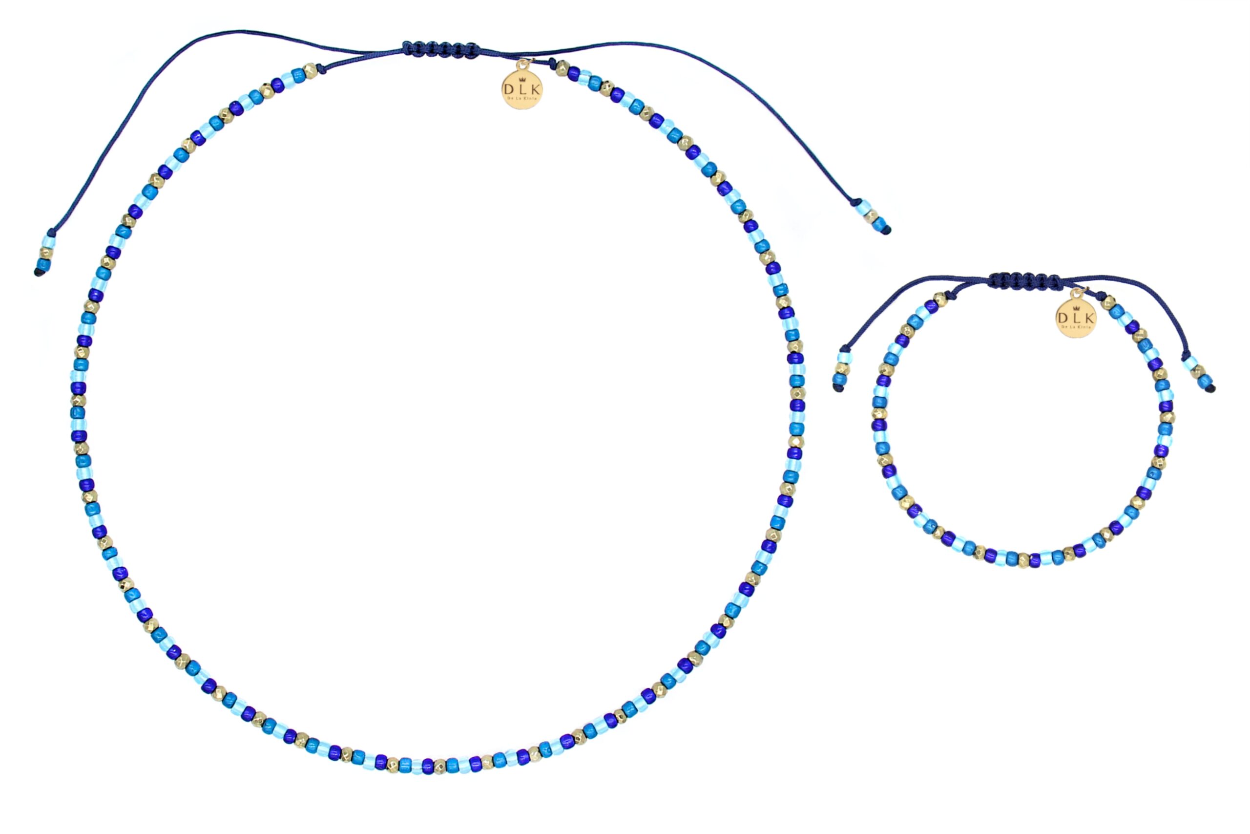 Naszyjnik i bransoletka osadzone są na regulowanym sznurku, co zapewnia idealne dopasowanie zarówno na dekolcie, jak i na nadgarstku: